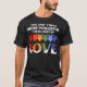 Show your support for love and equality with this powerful and uplifting statement tee. Featuring a bold graphic print on soft fabric, this tee is a perfect way to spread positivity and support for the LGBT community. Let your voice be heard and stand up for what truly matters - love.