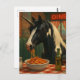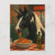 The pinto unicorn in a diner eating Spaghetti Vykort