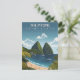 Escape to the lush paradise of the Caribbean with this stunning The Pitons Travel Card. This vintage-style illustration captures the majestic emerald peaks of Gros Piton and Petit Piton as they tower over the turquoise waters of the Caribbean Sea and white sandy beaches.