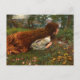 This is a digitally enhanced print derived from an antique pre-Raphaelite painting titled "The Princess Out of School" by Edward Robert Hughes and depicts a young woman laying in a woodland field of flowers.