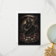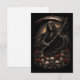 A hooded grim reaper with a bloodstained scythe rises over skulls and fading roses, marking the relentless passage of time and fate.