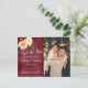 Denna samling har en stämningsfull marsalröd bakgrund med trendig typografi och blomsterdekorationer. Anpassa enkelt designen med din egen text för att göra dessa 'save the date' vykort unika för din speciella dag.