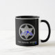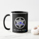 Rural Badge Coffee Mug. Black and white mug. It has a black handle and black interior. It comes in different sizes and it comes in 11 oz or 15 oz sizes. It is microwave and dishwasher safe.