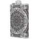 A hypnotic fractal composition unfolds like a futuristic metallic flower, blending intricate black ornamental work with soft blush highlights. Symmetry radiates from the centre in layered reflections, creating a sense of depth, calm, and infinite motion. This artwork balances organic floral forms with digital precision, making it ideal for modern interiors, meditation spaces, or statement décor that invites contemplation.