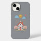 Esta encantadora ilustración captura la esencia de la felicidad y la calidez. La imagen muestra una pequeña casa blanca con detalles rojos, rodeada por árboles con hojas en forma de corazón y flores amarillas que dan vida al paisaje. Sobre el tejado, un perro sonriente observa la escena, mientras que en el cielo, un sol radiante y sonriente derrama luz sobre todo.