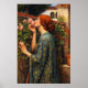 Waterhouse’s careful attention to texture brings the scene to life, from the soft petals and glossy foliage to the rich fabric folds and the gentle warmth in her skin. The composition feels calm and timeless, blending romance with stillness, as if the whole garden has paused for a single breath. It is a painting about beauty, reflection, and the quiet power of everyday moments, where a rose becomes a symbol of memory, longing, and inner peace.