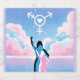 Feminina silhuetter står under en rosa himmel med en vit transgenus-symbol på himlen likt bat-signalen, den har en hjärta i mitten.