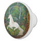Bring the enchanting world of a mythic garden to your furniture with this exquisite ceramic cabinet knob. This captivating Japanese Nihonga masterpiece draws you into a secluded, sacred space, where a majestic unicorn rests in a tranquil garden. The scene is viewed through what appears to be an intricate, stained glass-like window, adding to its mysterious and dreamlike quality.
