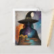 A cute witch with a river flowing through her and a starry night sky she protects nature