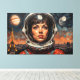 This digital artwork by Otis Porritt presents a striking close-up of an astronaut helmet. Her face, rendered with expressive, painterly strokes in warm skin tones and deep blues for her eyes, gazes upwards with a sense of wonder. The helmet's visor reflects a vivid blue sky, mirroring the expansive, brushstroke-textured sky above a desolate, sandy landscape. The impasto-like technique, characteristic of digital art mimicking traditional painting, gives the piece a dynamic and tactile quality, emphasizing the contrast between the detailed figure and the vast, unknown environment.