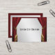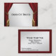Röda sammetsgardiner över en silver skärm med namn i teaterföretaget eller teaterföretaget - silver andra sidan för att matcha framsidan med enkel text
