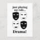 Theater Mask Theater Drama Arts Funny Postcard, originalutformning av Nisha Prabhu. Gå in i strålkastarljuset med vårt förtjusande teatermask teater Drama Arts Funny Postcard! Perfekt för skådespelare, dramaentusiaster eller någon som uppskattar prestandakonsten har det här vykortet en lekfull utformning av klassiska teatermasker som förkroppsligar det tidlösa uttrycket av positiv och negativ. Öga-fångande färg och visuella illustrationer gör detta vykort till en roligt utöver alla samlingar. Perfekt för inbjudningar till teatraliska föreställningar, som en humoristisk gåva till dramalärare, eller helt enkelt som ett lätt sätt att hålla kontakten med vänner som kärlek för konsten. Vare sig du firar en framgångsrik show, vill göra någon mer stolt över sin dag med ett skratt eller tittar inspirera framtida skådespelare, så är detta teatermask teater Drama Arts Funny Postcard ett perfektens val.