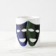 Ett par teatermasker, en blå och en grönt. Den här designen ser ut att gälla i Mugg