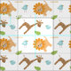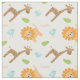 Den förtjusande tygdesignen presenterar ett orange lejont, en brun giraff, två blåttfåglar och ett grönt löv och kan personifieras med ditt barns namn eller någon text av ditt primat.
