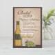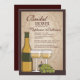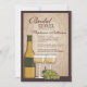 En elegant- och åldraslook på denna vin-themed inbjudningskort för möhippan är perfekten, när bruden är en vinälskare, eller partyet ska rymmas på en vinodling eller en vingård. Två exponeringsglas av vitvin med druvor och vinflaskan på en åldras tittar subtly mönstrade bakgrundsge denna design en tuscan för den gammala världen känselförnimmelse.