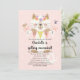 Gissning vem får meowied? En söt trasdockakatt med en rosa bohokrona och svan för blommigt krullade i hängningar för en hjärta blissfully från bunting med ordkärleken på den. Lyckliga vänner, en fågel och fjäril, firar närliggande. Dessa söta kattungeinbjudan i rosa-, lavendel-, grönt-, solbränna- och krämtoner är perfekta för en themed möhippa för katt. Polkahjärtabakgrund och bekläda och baksidaen av kortet. Konstverk© Chrissy H. Studio, LLC. All reserverad rättigheter.