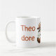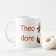 Mugg har en bild av Theo tillsammans med namn och frasen "globetrotting pangolin". En underbar gåva till fläkt av Theo och Pangolin Brev. Endast för abonnenter på Pangolin Brev.