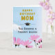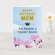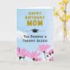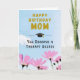 Therapy Degree Funny Mom Birthday Card. Celebrate your amazing mom's special day with a laugh! This humorous birthday card features the message 'Happy Birthday MOM, You Deserve a Therapy Degree,' perfectly capturing her endless patience. Stylish graduation cap, bold gold lettering, and pink cosmos flowers against a blue sky, it's designed to bring a smile to her face. It's the perfect way to show appreciation for all she does. A unique card for a unique mother!