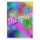 " Thespianen"… vet du att vad den betyder…, gör de? Detta kort presenterar regnbågen färgad bakgrund med komedi, och tragedin maskerar.