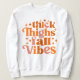 Den här slitstarka och lekande falldesignen har roligten och den självsäkra frasen "tjocka hörlkrar" i ett fet, återinspirerat teckensnitt. Texten är placerad i en dynamisk, staplad layout där varje ord är fylld med varma höstnyanser, inklusive skuggor av orange, persika och mjuk rosa. De omgivande stjärnliknande gnistor tillför en liten aning stollig och skina, vilket förbättrar designens framsynta och mysiga känsla. Typografin är både djärv och djärv, ge den en livlig, vintage som på ett perfekt sätt fångar det centrala i fallet.