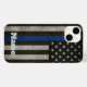 Protect your phone in patriotic style with this Thin Blue Line distressed American flag design. Featuring a rugged black-and-white U.S. flag with a bold blue stripe across the center, this case honors and supports law enforcement officers. The weathered texture gives it a bold, gritty look—perfect for anyone who stands with the men and women in blue. Durable, slim-fitting, and eye-catching, this case makes a meaningful gift for police officers, their families, or proud supporters of the badge. Show your respect wherever you go.