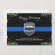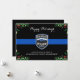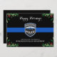 Skicka God jul hälsning till vänner, företag, medarbetare i tillsatta lagar och ert samhälle med detta unika Thin Blue Line Polis-julkort - Modern svart och blå med grå löv och bär. Anpassa med polisavdelningens logotyp, meddelande och avdelning. COPYRIGHT © 2020 Judy Burrows, Black Hund Art - Med alla Höger reserverade. Tunn Blue Line Polisavdelning - julkort Helgdag