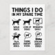 Funny dog lover quote with playful icons about walking dogs, looking at dogs, researching dogs, talking about dogs, thinking about dogs and dreaming about dogs. Ideal for dog fans who enjoy humor.