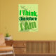 En utskrift av Rodins "Thinker" med Descartes berömd-citat i grönt
