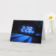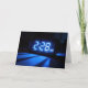 A blue LED alarm clock illuminates a room at 2:28 AM, casting a calming blue glow that creates a serene atmosphere in dark surroundings.