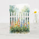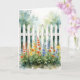 A white picket fence with flowers adorn this card. Text inside can be changed. Image is AI-generated by IveyCottage.