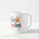 En roligt och en lekfull design med "Thinknoodles" i ord i fetstilt, snabb typografi. Denna sjudande och livliga utformning kombinerar ljusa färger med nylonillustrationer och abstrakt mönster, och skapar en ljusare och energirik vibe. Den här mugg-designen ger dig perfekt att skapa kreativitet och glädje i vardagen och inspirerar och roar dig.