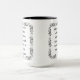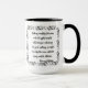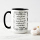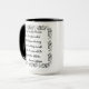 Tvåton svart på kant och handtag på vit mugg med svart utsmyckad ram med citat, "Ingenting kan stoppa mannen med rätt mental inställning från att uppnå sitt mål; ingenting på jorden kan hjälpa mannen med fel mental inställning…"