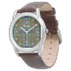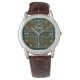 Snyggt läderbandsur, med den klassiska blå och bruna klan Thomson tartan plaid mönster, på ansikte, med vita nummer och punkter för timmarna. Vit anpassningsbar läser Thomson och kan vara personlig att läsa vad du vill.