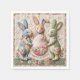 Decorative paper napkins featuring vintage Easter bunnies quilted-style print design. Three adorable fabric-look rabbits with Easter egg basket and "Happy Easter" message. Cottage core shabby chic aesthetic. Perfect for Easter brunch, spring parties, Easter dinner table, or holiday gatherings. Nostalgic charm.