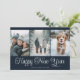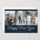 A joyful New Year photo card featuring a clean, modern three-photo layout that beautifully highlights your favorite winter moments. The deep navy panel below adds a touch of elegance, paired with a graceful script “Happy New Year” greeting that feels festive and warm. Personalized family details complete the design with a polished finish. Perfect for sharing heartfelt wishes and celebrating the year ahead with style and charm.