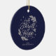 A modern Religious Christmas tree ornament with A Thrill of Hope in whimsical lettering ion navy. Personalize with your family name and add your photo to the reverse.
