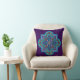 Throw pillow with a richly colored purple background that shows off a intricate mandala in shades of blue. A vibrant accent for home decor.