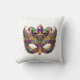 This throw pillow is shown in a festive Mardi Gras mask print.