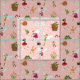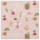 Mönster omfattar Thumbelina, älvor, blommor, svamp, fåglar, grodor, mus, snigel, ladybug, kanin och hut på rosa och guld glitter.