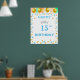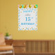 Vacker tiara/krone, flerfärgade ballonger och guld- och turkos konfetti Födelsedagsaffisch. Texten kan anpassas för andra åldrar. Kronan kan också anpassas.
