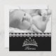 Bedårande diamanter och diamanttiara baby girl prinsessa födselannonseringar. Denna eleganta svart-vit prinsessa baby girl födselannons är enkel och elegant och är lätt att anpassa genom att lägga till ditt foto, typsnitt, teckenstorlek och färg samt formulering. Observera att alla inbjudningsdesigner du hittar på Zazzle är tryckta grafik på vanligt papper utan faktiska ädelstenar, band, upphöjda, präglade eller tillagda delar eller bitar.