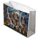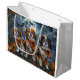 Släpp upp spookandan med den här eerie Halloween-designen med en hundar-förpackning under en mörk, månbelyst himmel, omgiven av flygande fladdermus och glödande pumpor. Perfekt för dem som kärlek en aning skrämmande roligt med sina hårigets vänner!