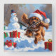 Tibetansk spanjor som springer i Snö med julklapp Fyrkantig Klocka