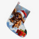 Tibetansk spanjor som springer i Snö med julklapp Stor Julstrumpa