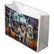 Släpp upp spookandan med den här eerie Halloween-designen med en hundar-förpackning under en mörk, månbelyst himmel, omgiven av flygande fladdermus och glödande pumpor. Perfekt för dem som kärlek en aning skrämmande roligt med sina hårigets vänner!