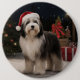 Tibetansk Terrier Hund i Snö-jul Knapp
