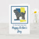 Tibetansk terrier hund siluett i gul blå och svart modernt rutnät mönster. ‘Till den bästa hundpappan’ och ‘Glad Fars Dag’ på utsidan och älskvärda meddelande på insidan kan ändras till vad du vill. Bra sätt att fira en husdjursägares Fars Dag.