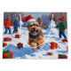 En livlig tibetansk Terrier springa som med glädje passerar vinterscenen och bär en festlig röd julhatt. Denna charmerande utformning belyser rasens långa jackande, lekande personlighet och tillgivenhet samtidigt som den fångar julhelgens värme och glädje. En härlig vinter-fullt av festlig cheer.