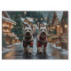 Denna festliga design fångar den glada känslan av semestern, med en bedårande hundar.Bosatt i en vintersaga, komplett med ett dekorerat julgran, och vackert inslagna presenter. Snöflingor faller försiktigt, vilket ger en magisk touch till scenen, medan de levande färgerna på semesterdekorationerna skapar en varm och glad atmosfär.