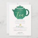 En modern, sofistikerad, elegant- och chic "Time for Tea"-mall för tefest i möhippa som innehåller en minimalistisk tekruka som är digitalt lagrad med guld (inte äkta folie) och en smaragdnyck. Perfekt för en möhippa i hemmet, party som är elegant, klass och modernt, ett guld och framväxande bröllop och brider som kärlek klassiskt skript och typografi. Anpassa varje textrad.